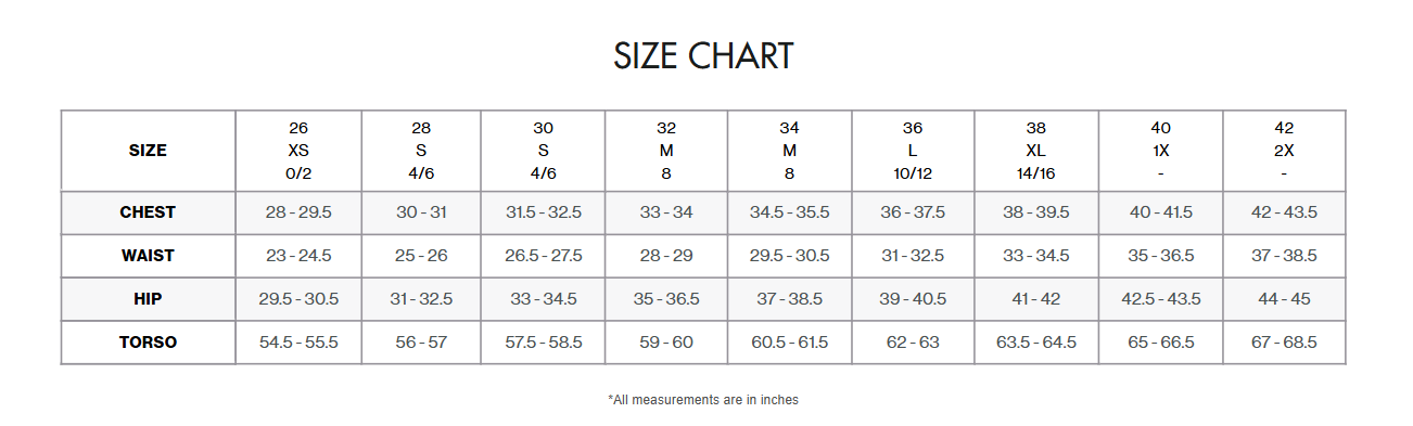 Chest 28 - 29.5 30 - 31 31.5 - 32.5 33 - 34 34.5 - 35.5 36 - 37.5 38 - 39.5 40 - 41.5 42 - 43.5